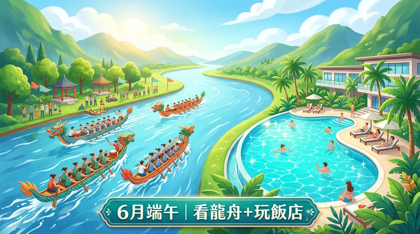 - Day 1:出發 → 看龍舟或海邊 → 飯店 check-in