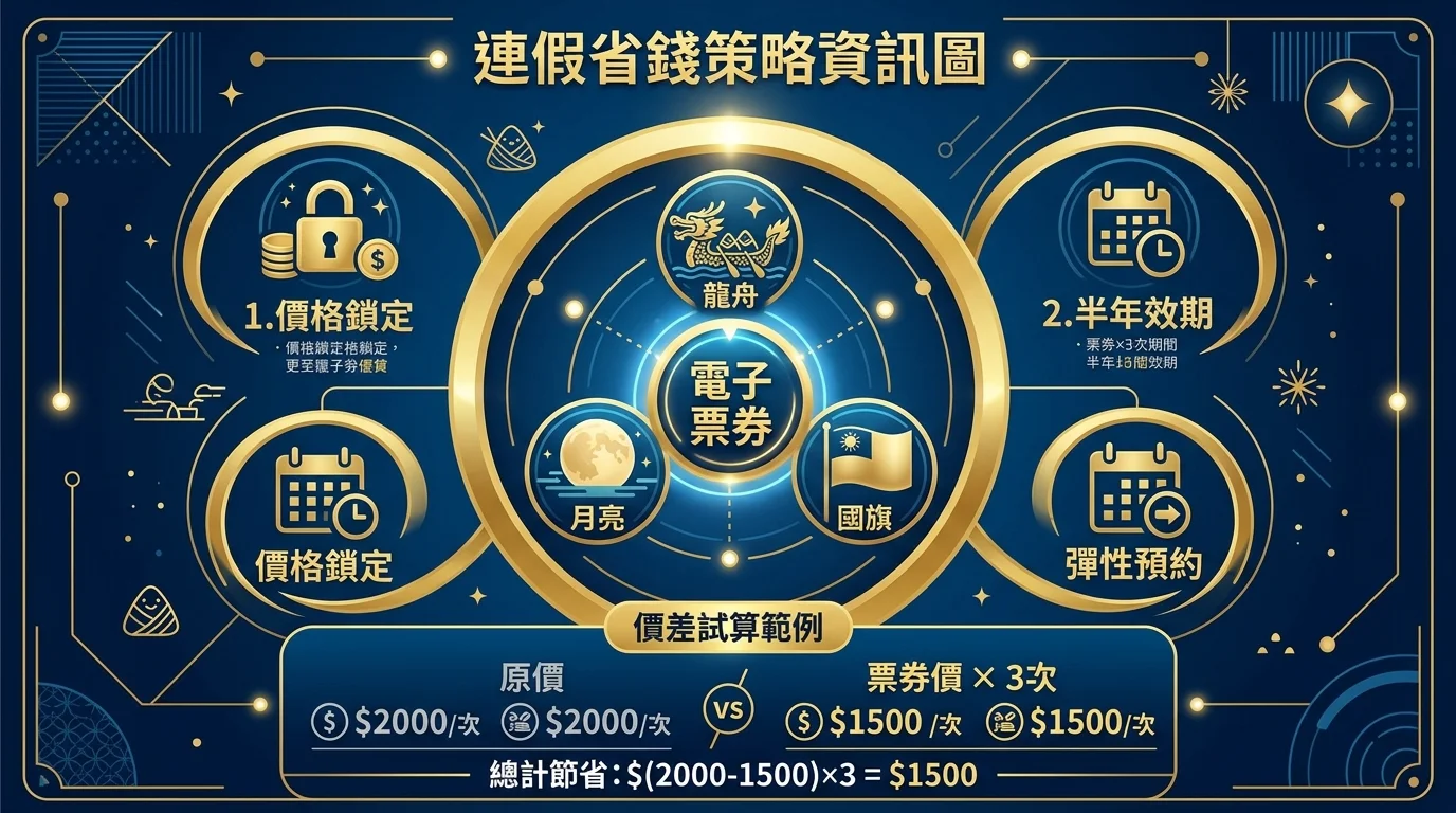 TL;DR: 下半年端午(6月)、中秋(9月)、雙十(10月)三大連假是親子出遊的好時機。提前用電子票券鎖價(最低 2 折起),一次買齊三個連假的住宿最划算,半年效期剛好涵蓋。