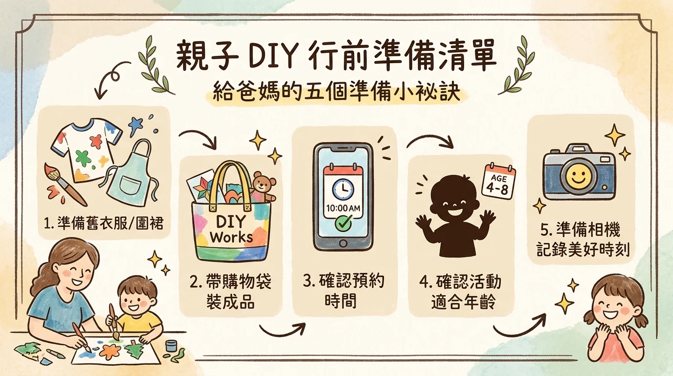 DIY 活動時間通常 1-2 小時。不會太長也不會太短,剛好適合小孩的專注力。比起在遊樂園排隊等設施,DIY 的每一分鐘都是在「做事」,小孩不會喊無聊。