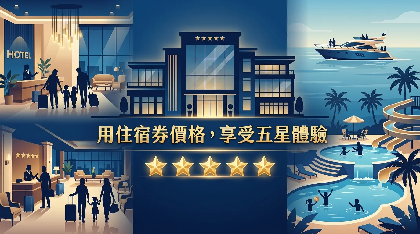 A: 住宿券通常比直接訂房(官網或 OTA)便宜 20-50%,購買後半年內有效,可以彈性預約入住日期。缺點是需要自己打電話跟飯店預約、假日可能需加價、預約熱門日期要提早。整體來說是目前最穩定的省錢訂房方式。