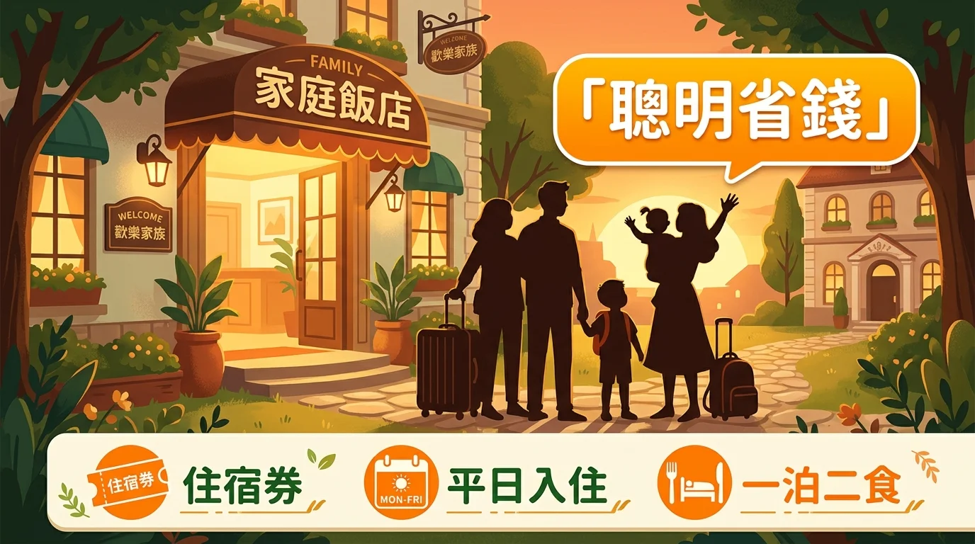 親子飯店不一定貴。關鍵是會不會找、會不會省。善用住宿券、選對入住時間、搭配一泊二食方案,花小錢也能讓全家住得開心。