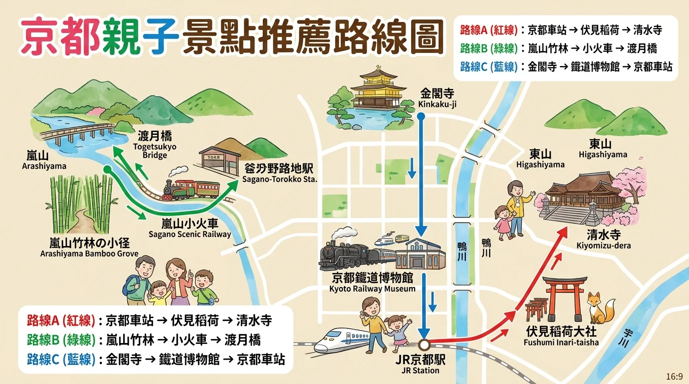 京都的古寺神社、嵐山竹林、和服體驗,帶小孩來一趟文化之旅,比你想像的更有趣。2025 年訪日旅客突破 4,270 萬人次(中央社, 2026), 京都是最受歡迎的文化觀光城市之一。2024 年京都市遊客達 560 萬人次,京都府整體超過 842 萬人次,主要景點外國旅客較前年增加近 30%(數位時代, 2025)。 台灣旅客以 676 萬人次排名第 3,年成長 11.9%(聯合新聞網, 2026)。 外國旅客人均消費約 22.9 萬日圓,消費總額 9.5 兆日圓創歷史新高(訪日ラボ, 2026)。 很多爸媽會擔心:京都會不會太「大人」了,小孩玩不起來?其實剛好相反——餵奈良小鹿、搭嵐山小火車、逛鐵道博物館,小孩比大人還嗨。