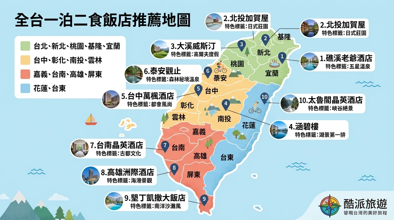 這篇幫你精選 2026 年全台 10 間 CP 值最高的一泊二食飯店,從宜蘭溫泉到台南古都、從湖景房到豪華露營都有。看完直接挑一間,帶全家出發。