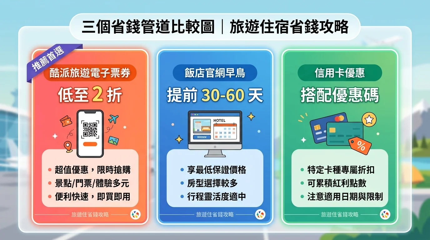 回到飯店住宿券與訂房完全攻略看更完整的訂房比價資訊。不知道住宿券怎麼用?這篇完整教學幫你搞定。想知道怎麼買到最便宜的方案?來看訂房省錢攻略。帶小孩的家庭,別錯過買大送小攻略。