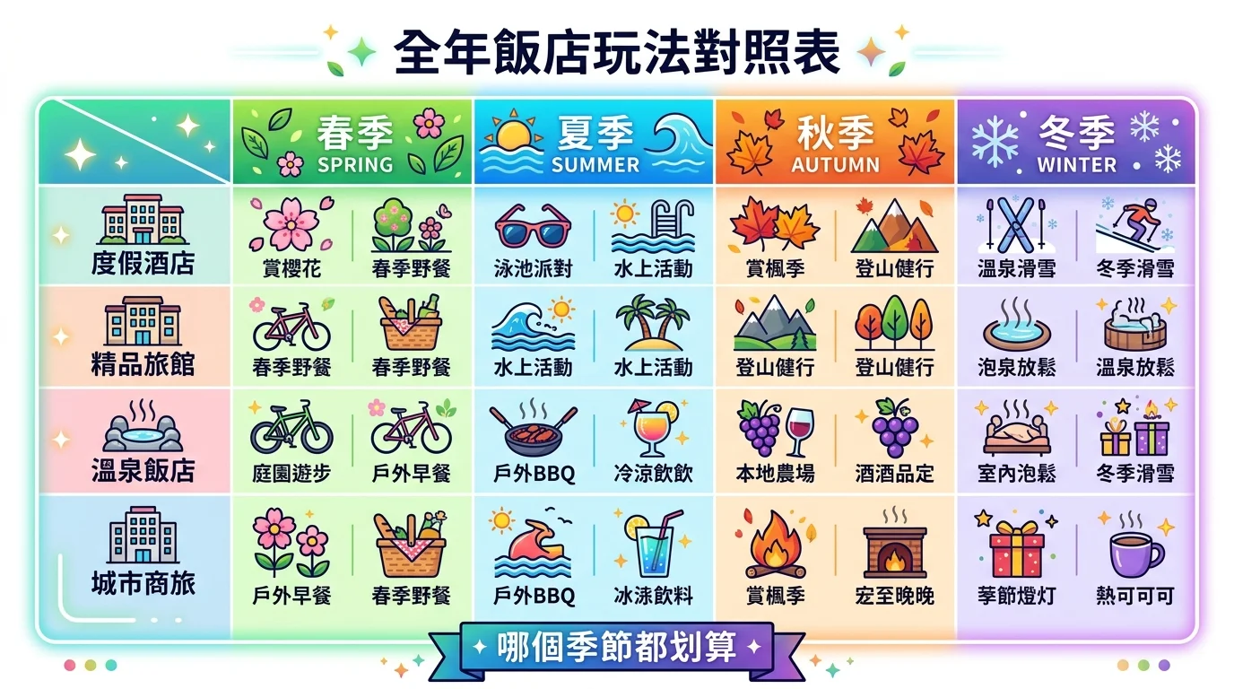 夏天玩水、冬天泡湯,四季都有好飯店等你。