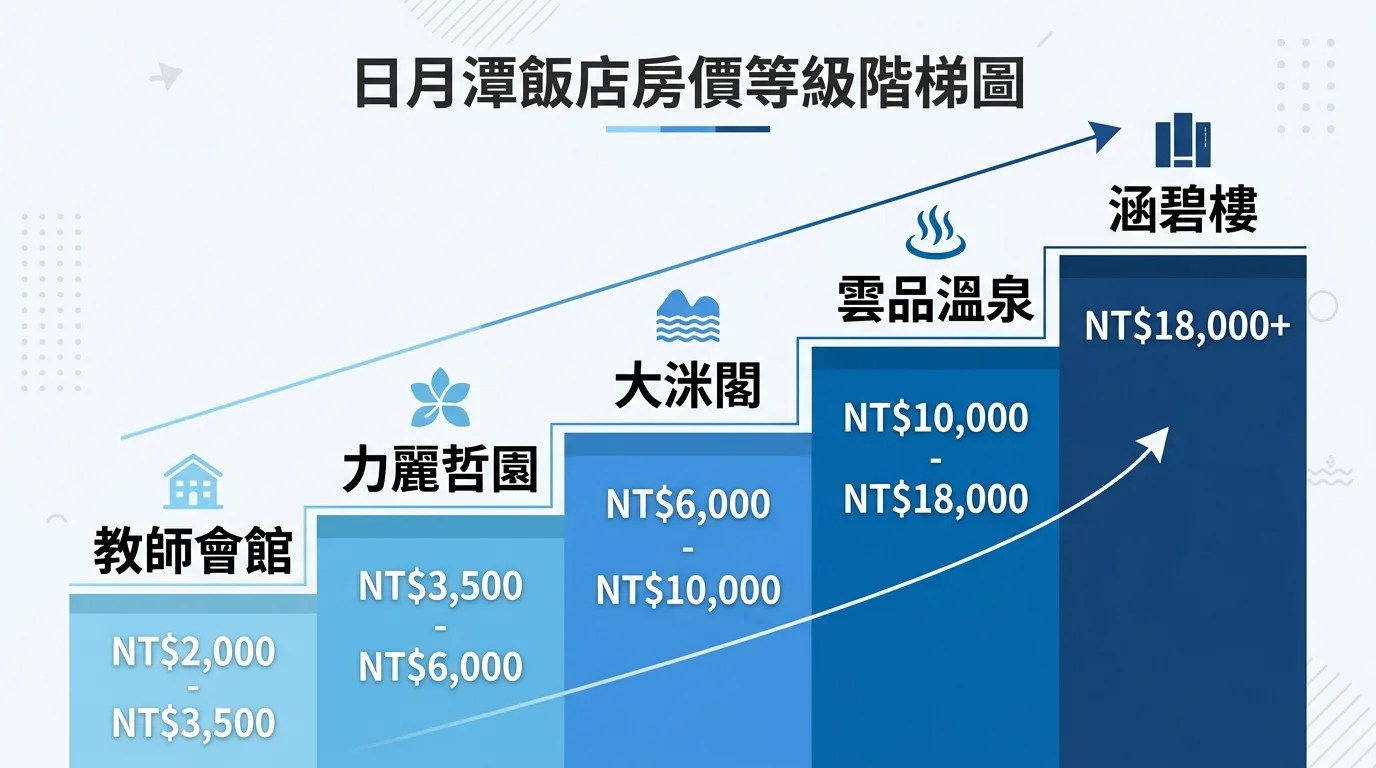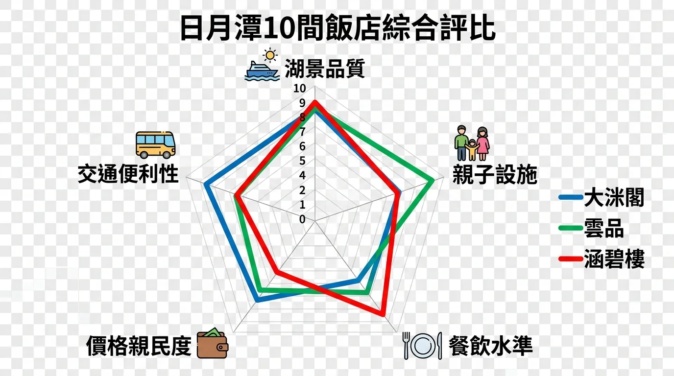 | 潭日月飯店 | 4.4 | 全房湖景 | $4,500-6,500 | 情侶、小家庭 | ★★★★☆ |