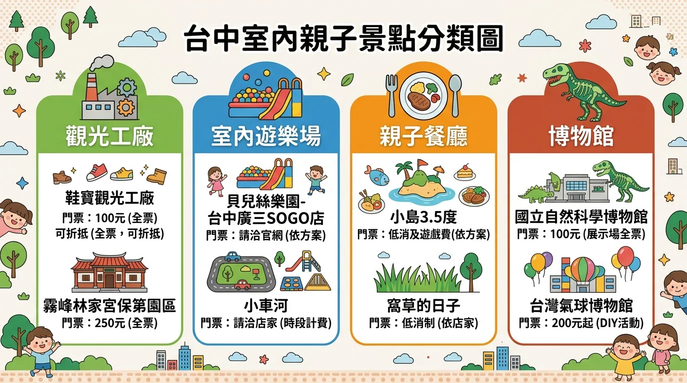 根據 Agoda 2025 年調查,34% 旅客計劃家庭旅遊(旅奇傳媒, 2025)。室內景點是親子家庭的雨天救星,台中的選擇特別豐富。
