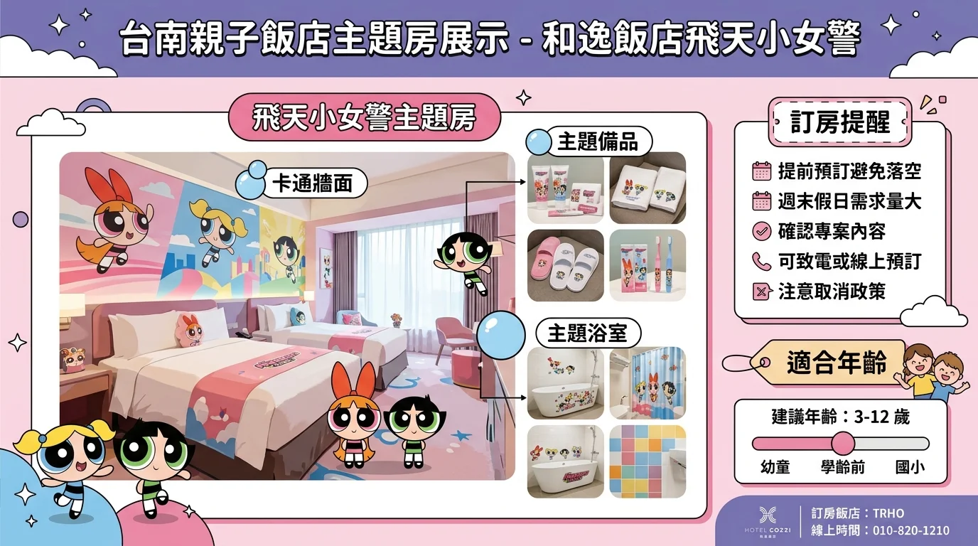 台南還有其他飯店推出不同主題的聯名房型。不同主題適合不同年齡和喜好的小孩。主題房通常需要加價,但住一次就會變成小孩最難忘的回憶。