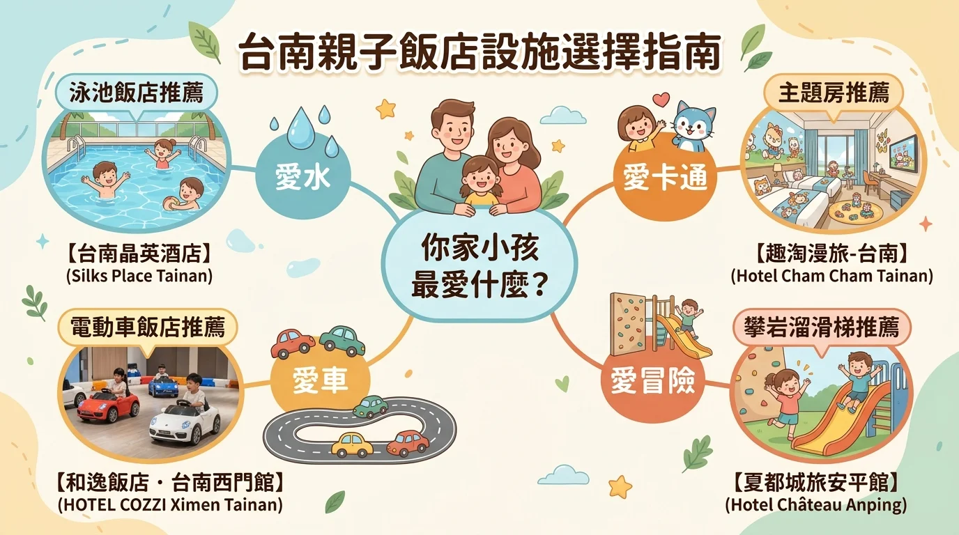 帶小孩訂飯店,設施是第一考量。再漂亮的房間,小孩沒地方玩,你也沒辦法好好休息。但台南親子飯店那麼多間,到底誰的泳池最好?誰的電動車最好玩?