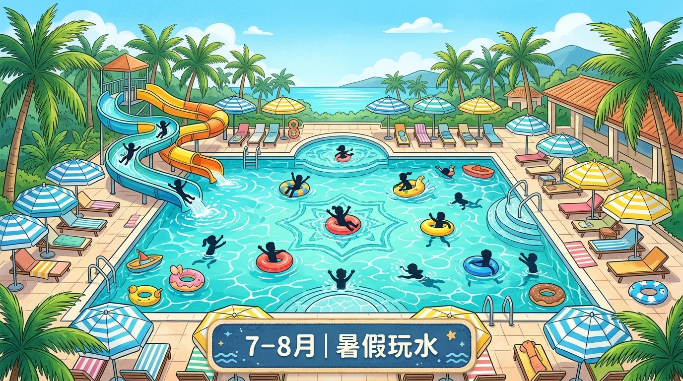 有泳池、滑水道的飯店在暑假最搶手。和逸桃園館(Xpark 隔壁)、礁溪長榮鳳凰(露天戲水區)都是暑假首選。8 月中下旬是暑假尾聲甜蜜點——人潮少、天氣好,票券彈性預約正合適。