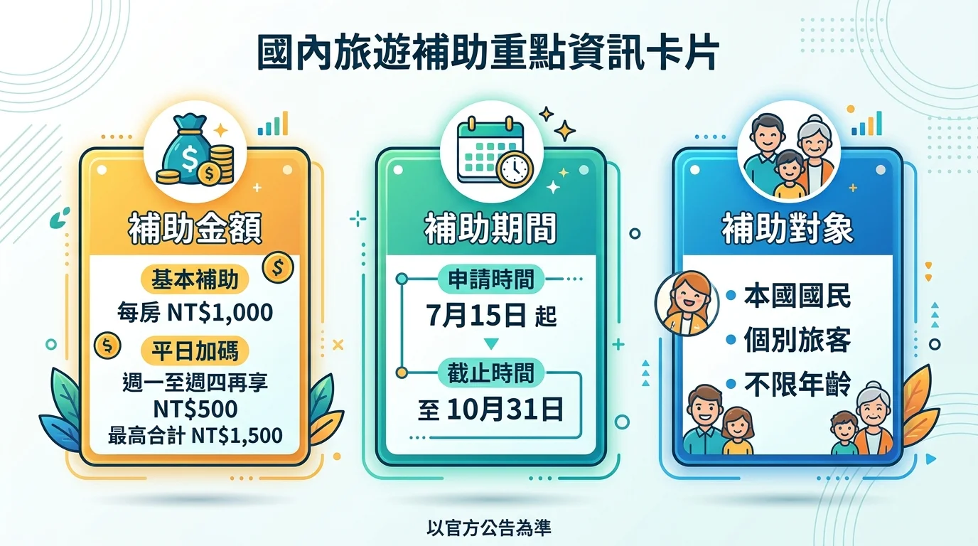 每年國旅補助的規定都會微調,以下整理 2026 年最新版的重點。