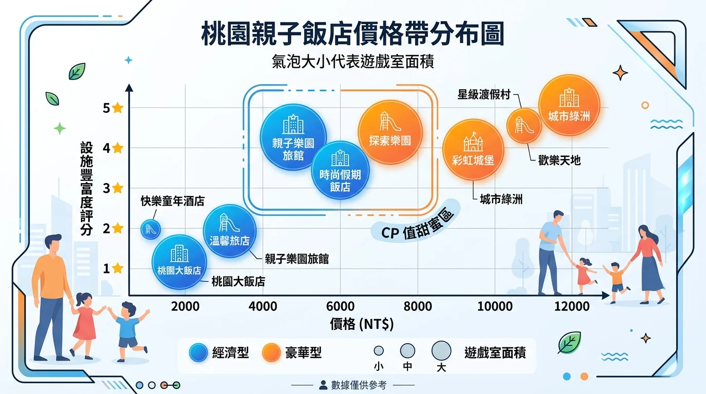 我們把桃園 10 間口碑最好的親子飯店全部整理在這裡。根據交通部觀光署統計,2024 年全台觀光旅館住房率回升至 61%,桃園年度遊客更超過 6,400 萬人次。從五星渡假村到平價 Motel,設施好壞、房價區間、真實住客評價一次比給你看。2025 年第一季全台旅館平均房價為 3,092 元,桃園中價位飯店含設施玩到飽,CP 值相當高。如果你正在找桃園親子飯店的優惠住宿,這篇幫你比好了,文中有獨家折扣連結。