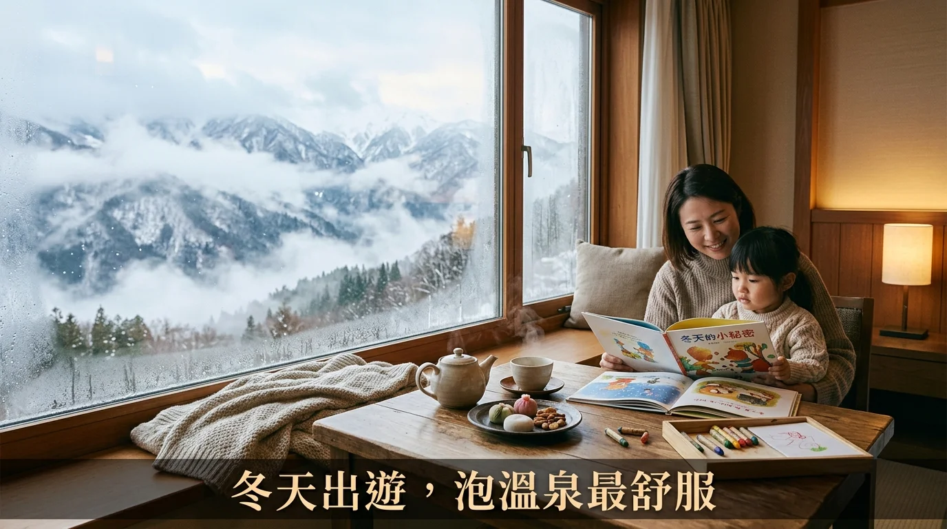 冬天泡溫泉是最幸福的事。大人放鬆、小孩也愛玩水——溫泉對小孩來說就是「很溫暖的泳池」。